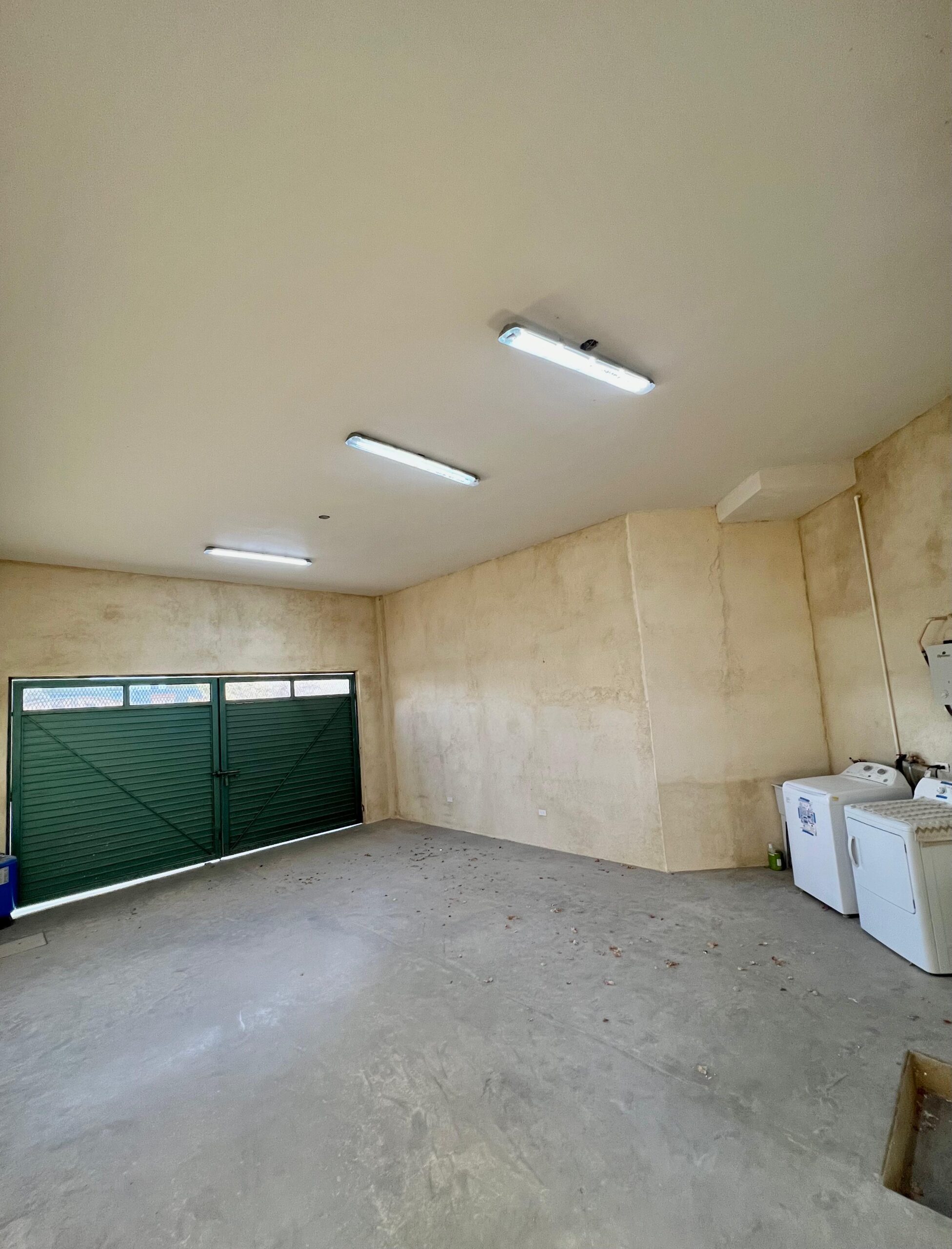 The property offers a big outdoor space and it’s all fenced. It has many spaces for parking too, inside the garage and outside.